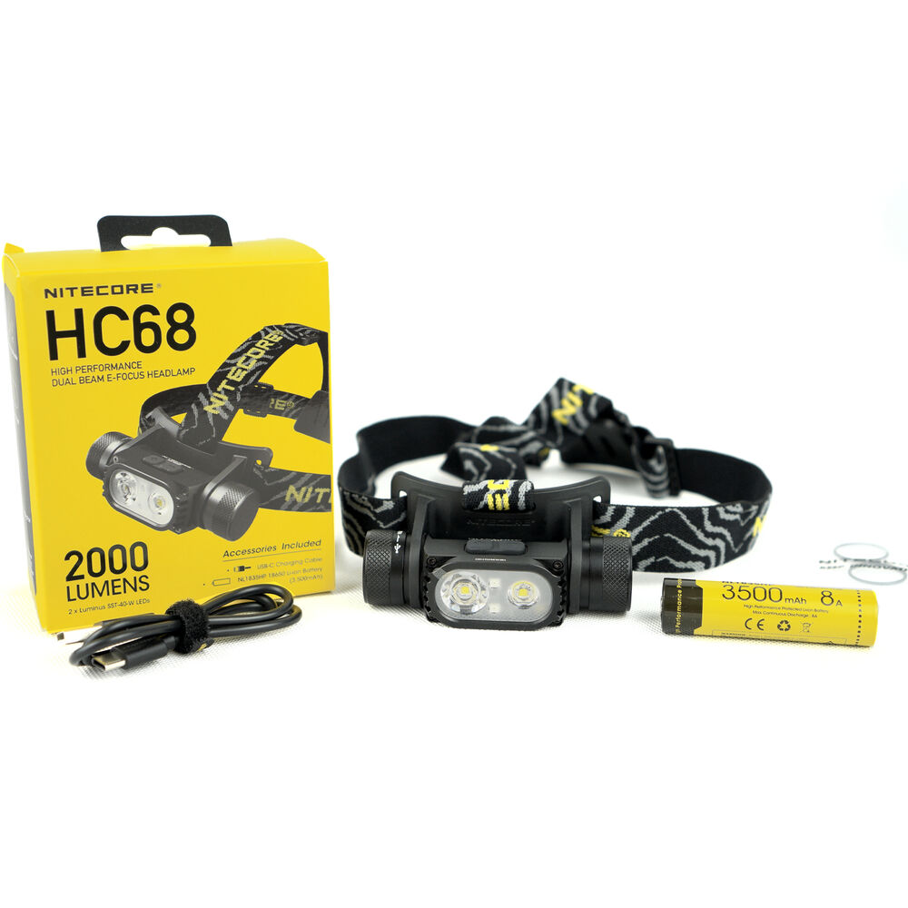 A Nitecore HC68 egy igazán erős fénnyel rendelkező, fókuszálható fényű fejlámpa. Maximum 2000 lumen fényáramot áraszt a 2 db Luminus SST-40-W elsődleges fényforrásából, mellyel akár 202 méterre is elláthatunk a sötétben. Fénysugara folyamatosan és gördülékenyen állítható a fókuszált, keskenyebb szögű Spotlight és a szélesebb szögű Floodlight fénysugár között. A HC68 két kiegészítő vörös fényű LED-del is rendelkezik, mely ideálissá teszi, hogy vadászat közben is praktikus társunk legyen. Memória funkciójának köszönhetően aktiváláskor ugyanazzal az üzemmóddal fog elindulni, mint amelyikkel legutóbb használtuk.
